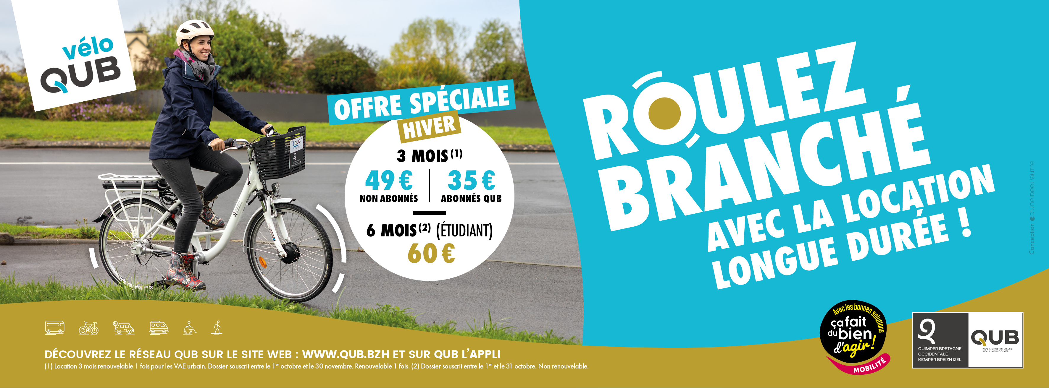 Pe e vefe evit mont d’al labour, mont da brenañ diankajoù pe evit kantren e straedoù Kemper, ez eo graet VéloQUB evidoc’h.