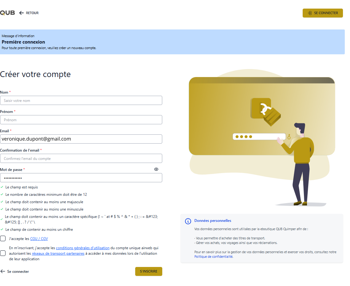 3) Je renseigne toutes mes coordonnés, puis je clique sur « S'inscrire ».