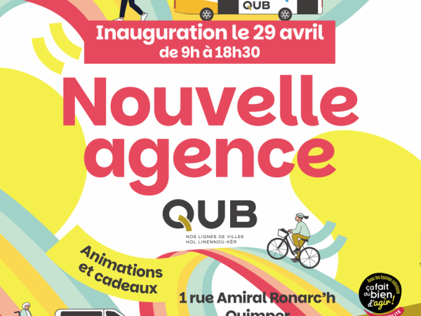 Dans le cadre du déménagement vers votre nouvelle agence, l’agence QUB sera exceptionnellement fermée les 27 et 28 avril. Réouverture prévue le mercredi 29 avril au 1 rue Amiral Ronarc’h à Quimper.