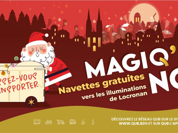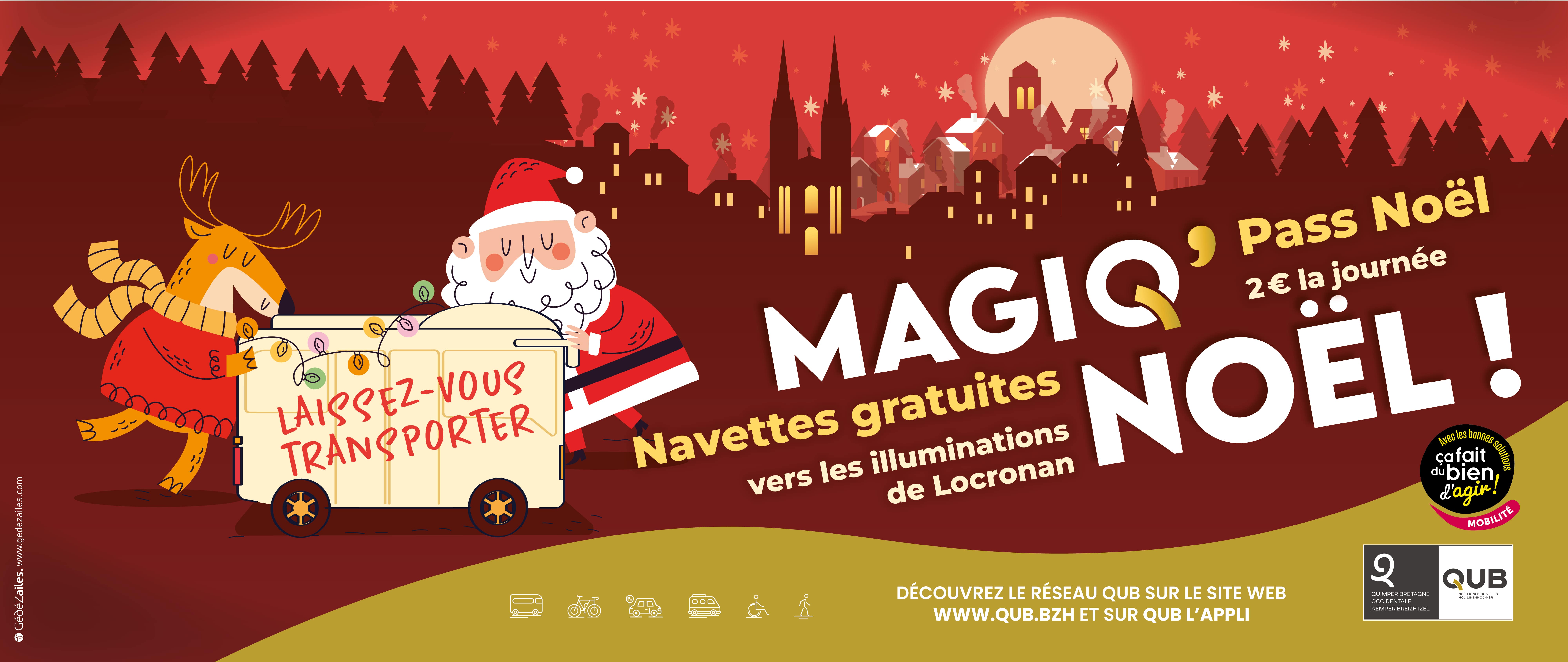 Les samedis 13, 20 et 27 décembre, le réseau QUB renforce la ligne 10 et met en place des navettes gratuites supplémentaires pour vous permettre de rejoindre le marché de Noël et les illuminations de Locronan en toute tranquillité.